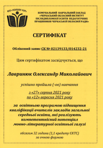 Сайт вчителя української мови і літератури Лавринюка О. М. | |